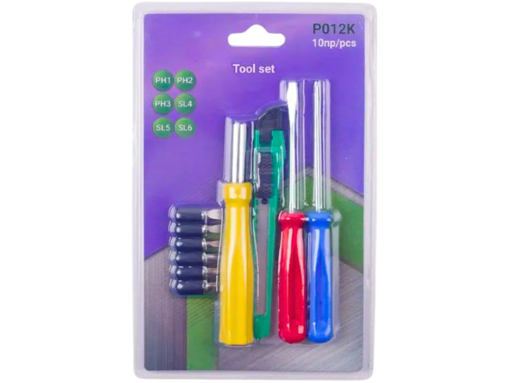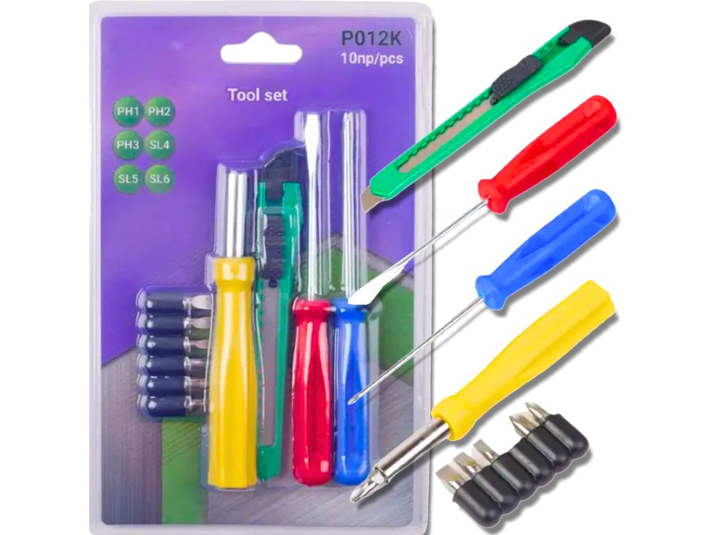 Praktičen in vsestranski komplet orodja je idealna rešitev za vsakodnevna dela v gospodinjstvu, uporabo v pisarni in hobije. Komplet vsebuje 10 skrbno izbranih kosov, ki nudijo osnovno, a zelo funkcionalno opremo za vijačenje, rezanje in zategovanje vijakov v različnih situacijah.