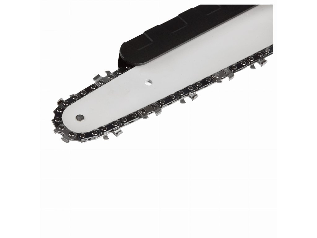 Žaga je opremljena z visokokakovostnim verižnim listom, ki omogoča gladko rezanje. Veriga ima zaščito. Motor ima bakreno navitje, kar zagotavlja počasno izgubo moči in povečuje učinkovitost ter hitrost rezanja.