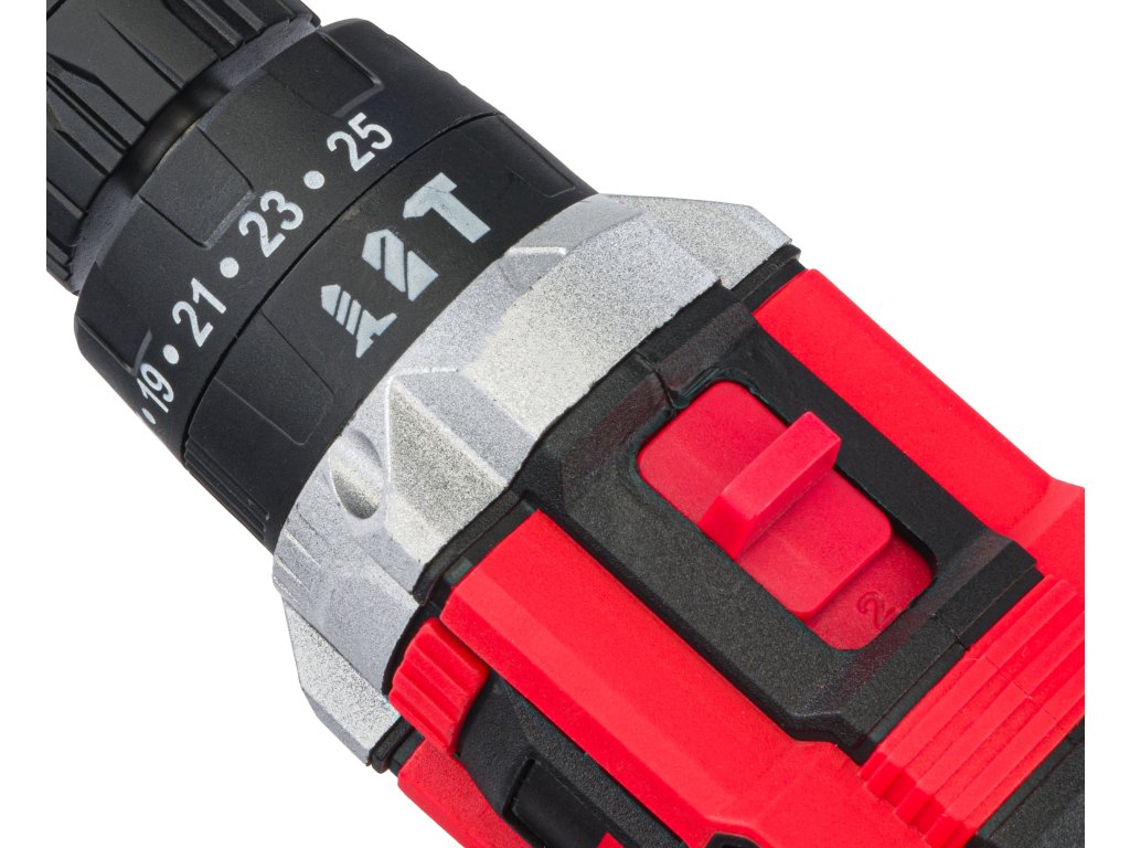 Izvijač je opremljen s sklopko z 25 nastavitvami navora za učinkovito vijačenje vijakov različnih velikosti v različne materiale, vključno s posebno nastavitvijo za vrtanje in vrtanje z udarnim učinkom. Poleg tega ima dvo-stopenjski preklopnik, ki spreminja območje vrtljajev izvijača (0-350 rpm / 0-1350 rpm).