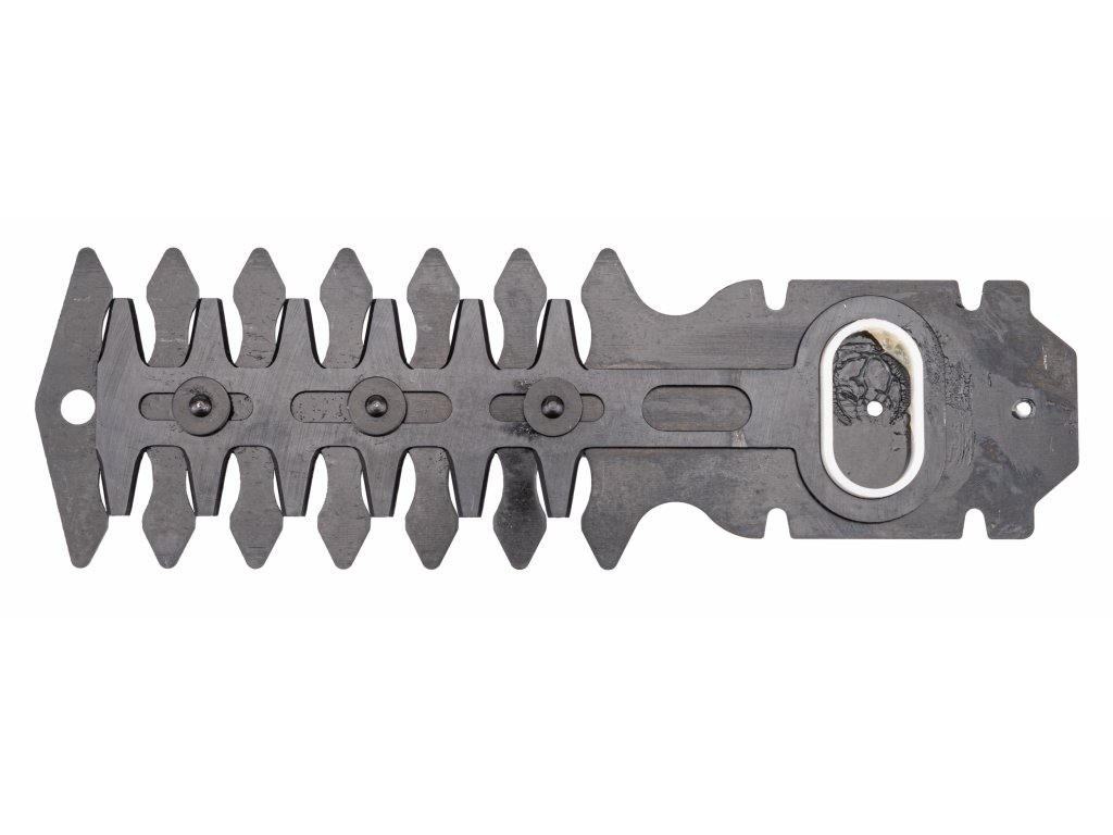 V paketu boste našli nož za travo s širino 83 mm in nož za grmičevje z dolžino 120 mm ter razmikom med zobmi 6 mm. Menjava noža je zasnovana brez uporabe orodja, kar omogoča hitro preklapljanje med škarjami za travo in škarjami za grmičevje. Z dvema nožema lahko natančno oblikujete robove trate in manjše grmičevje.