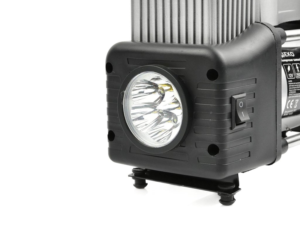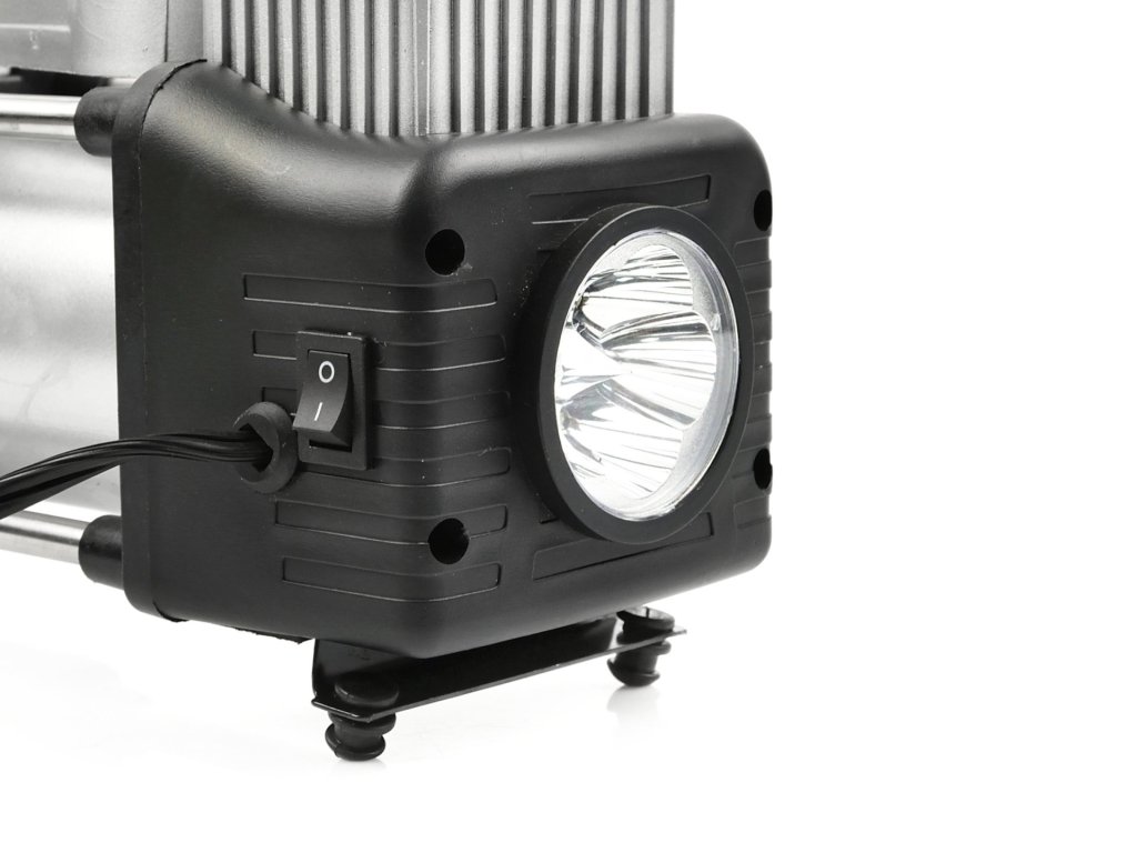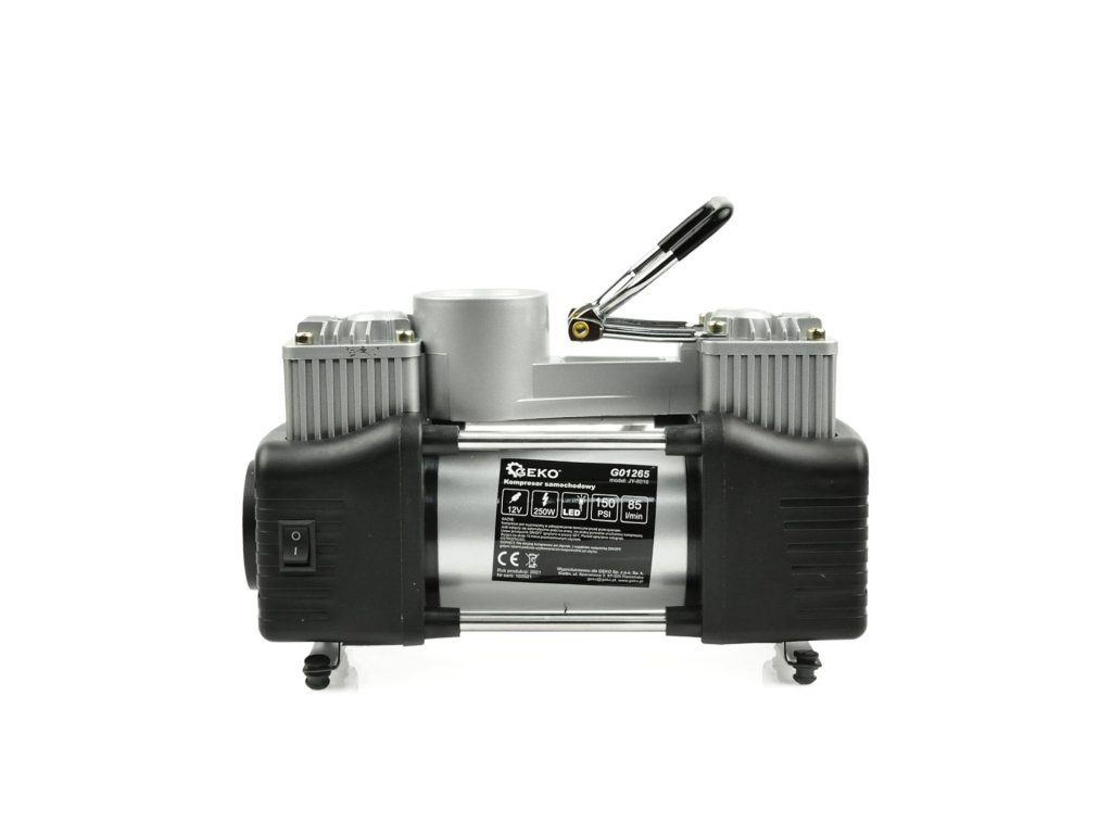 Avto kompresor 12V 250W je napajan z napetosti 12-13,5V iz vtičnice za vžigalnik ali neposredno iz akumulatorja. Ta kompresor je opremljen z berljivim manometrom s skalo v enotah Bar, PSI in kg/cm². Ima navojno konico prilagojeno za avtomobilske ventile, ki se uporabljajo tudi pri motociklih in kolesih. Vgrajena svetilka omogoča udobno uporabo kompresorja ponoči, brez potrebe po dodatni svetlobni napravi.