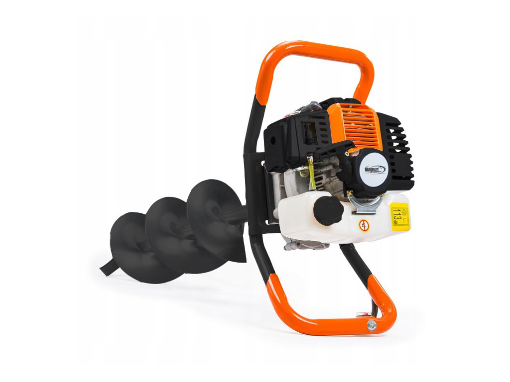 Ta bencinski zemeljski vrtalnik je zmogljivo orodje, idealno za delo v vrtu ali na gradbiščih. Zaradi močnega 5,2 KM dvotaktnega motorja omogoča hitro in učinkovito vrtanje lukenj za sajenje, stebre za ograje, kable in druge namene. S svedri premerov 10, 15 in 20 cm nudi univerzalno rešitev za različne potrebe vrtanja.