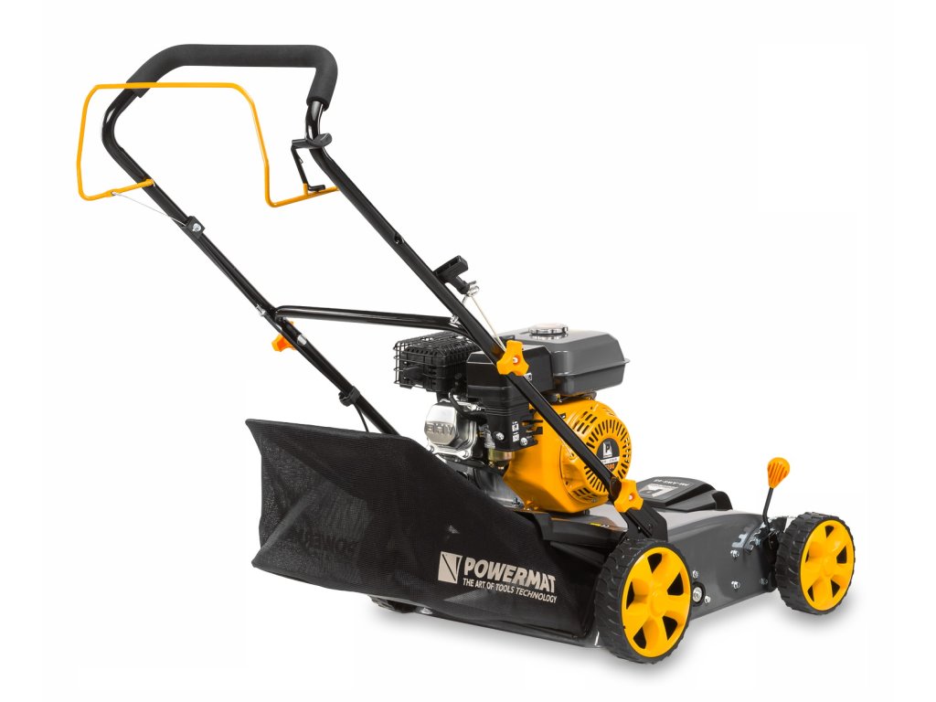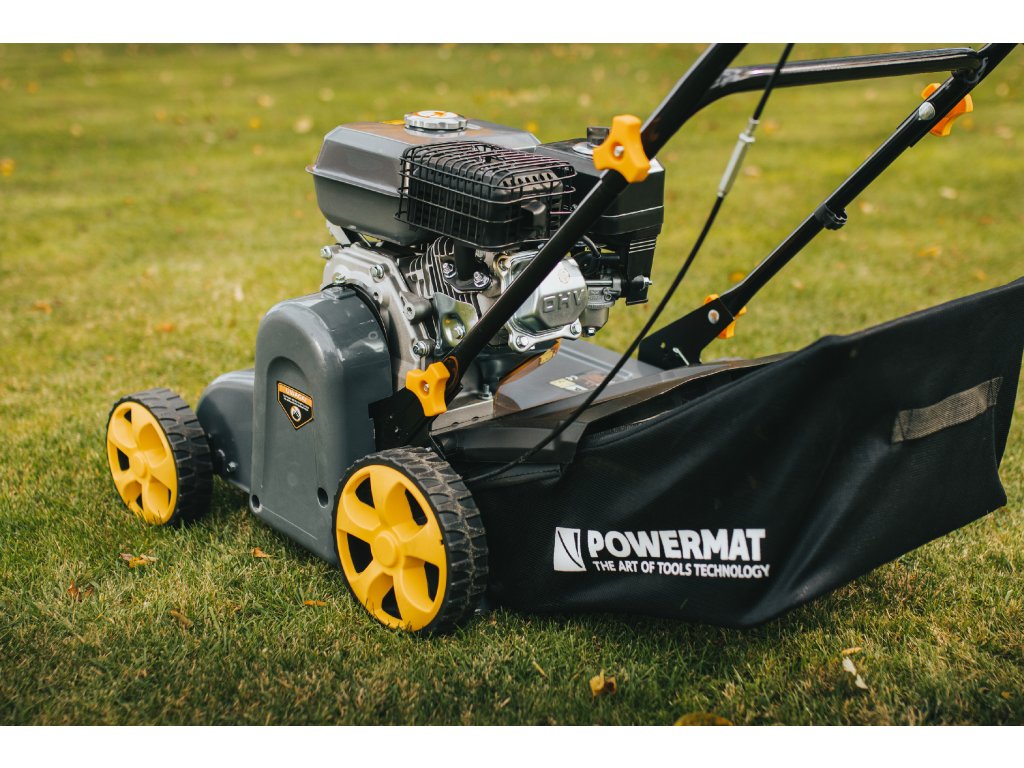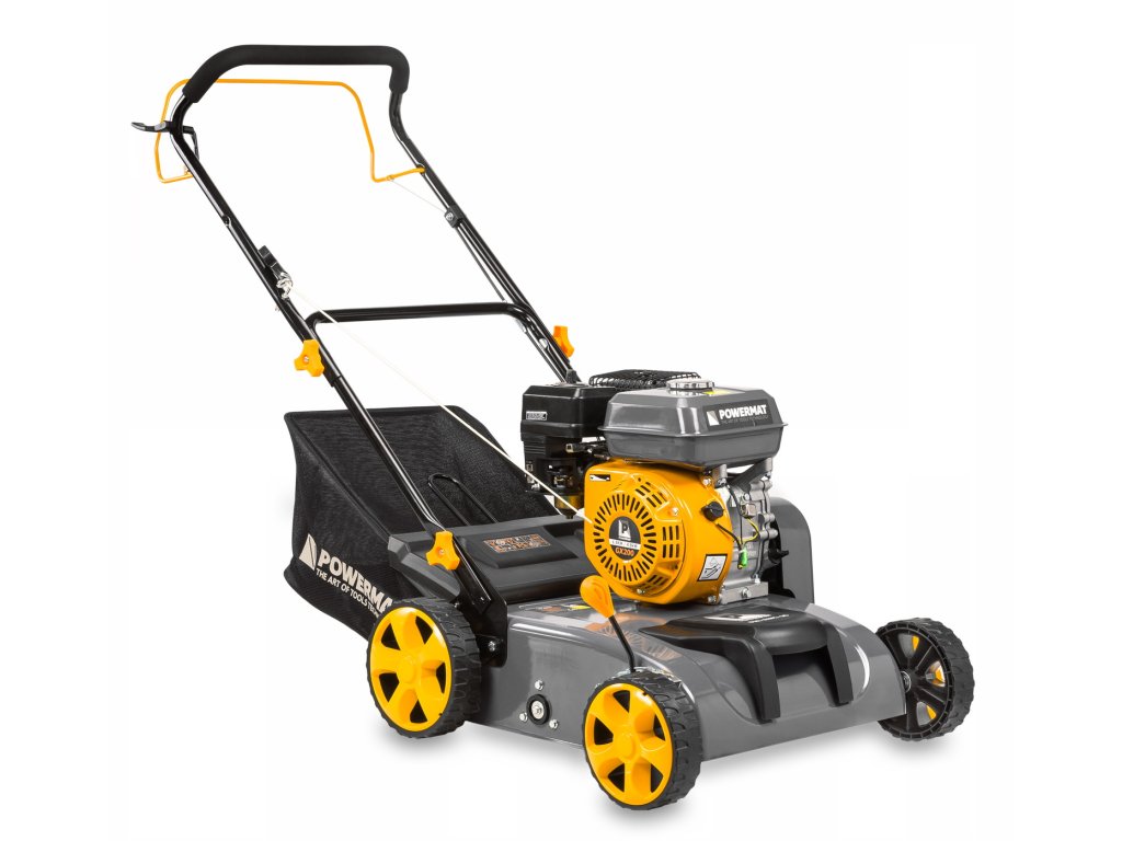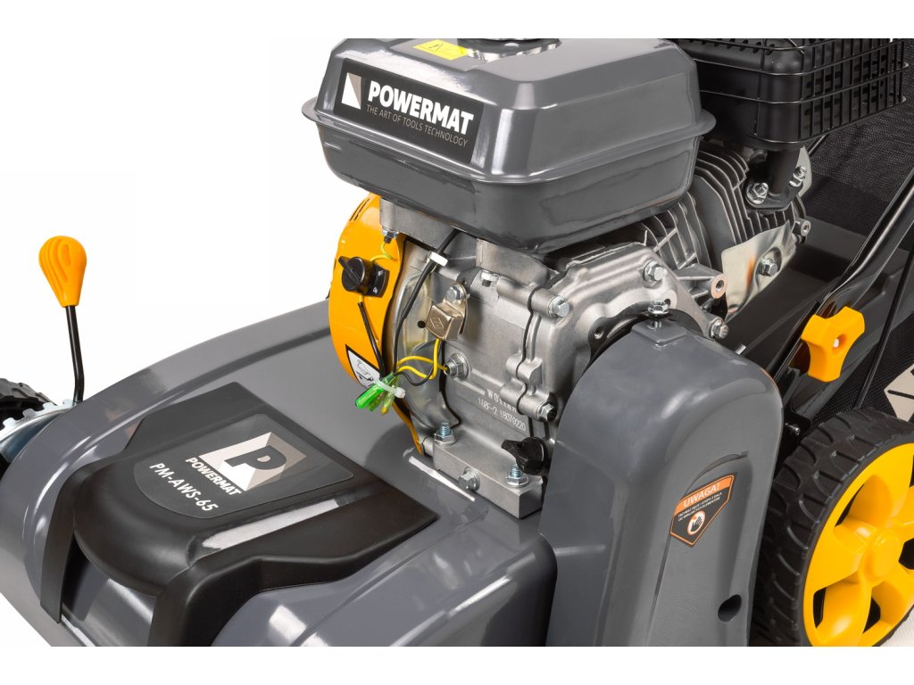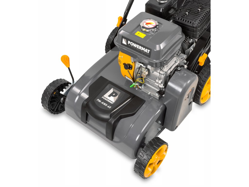 - Spalni aerator/vertikutator Powermat PM-AWS-65 poganja spalni motor z močjo 6,5 HP, ki zagotavlja ustrezno delovno zmogljivost.
