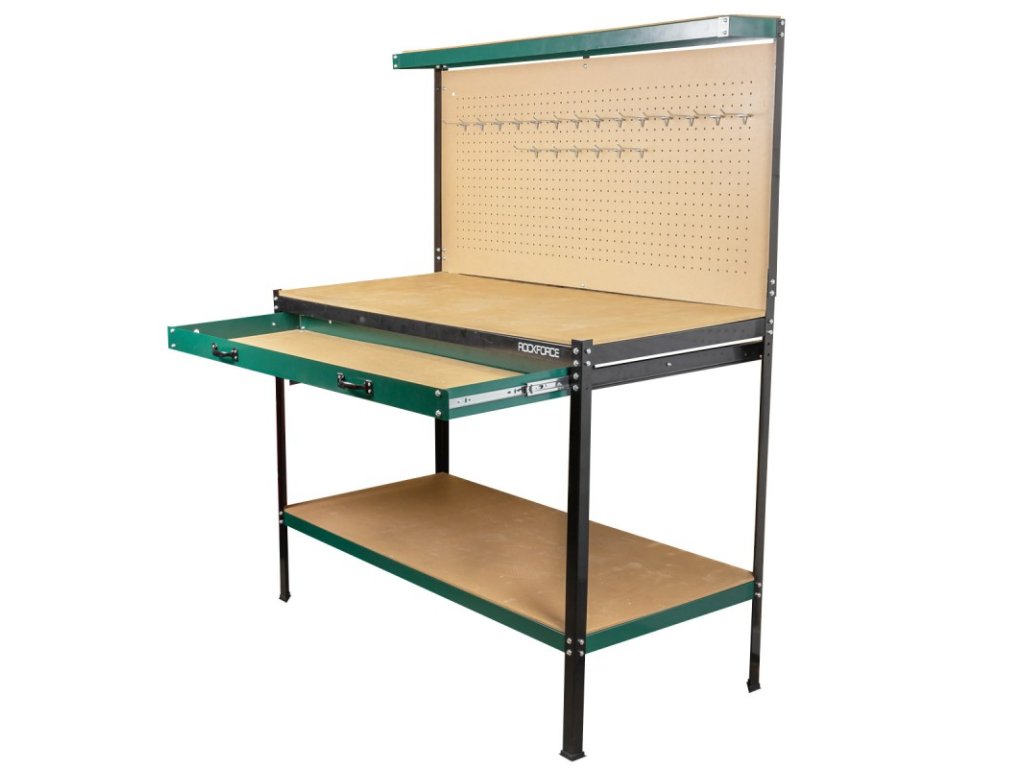 - Stol je opremljen z mnogimi praktičnimi policami, izvleki in kljukami, ki olajšajo organizacijo orodja in rezervnih delov.