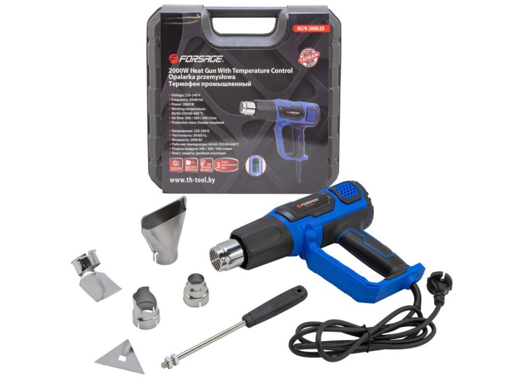 Električni toplotni pištola 2000 W, 2 hitrosti, 4 šobe, 600 °C