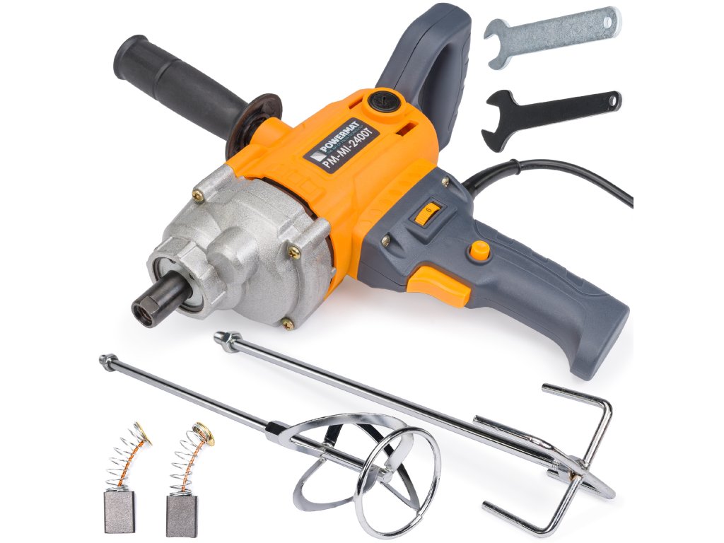 PM-MI-2400T je visoko zmogljiv mešalnik za barve in malto, ki je nepogrešljiv pri mešanju tekočih in prašnih gradbenih materialov. Ta zanesljiv mešalnik ponuja 6-stopenjsko regulacijo vrtljajev in izstopa po enostavni uporabi. Je idealna rešitev za mešanje barv, lepil, mavca, ometnih malt, apnenih in cementnih mešanic, epoksidnih smol in vnetljivih kemikalij.