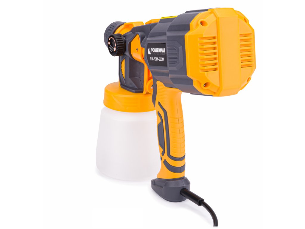 Pleskarska pištola znamke POWERMAT je opremljena z vzdržljivim in zmogljivim motorjem z močjo 550 W, kar jo naredi nepogrešljivo orodje za domačo uporabo.