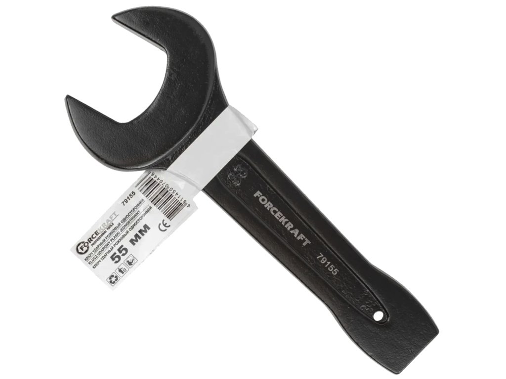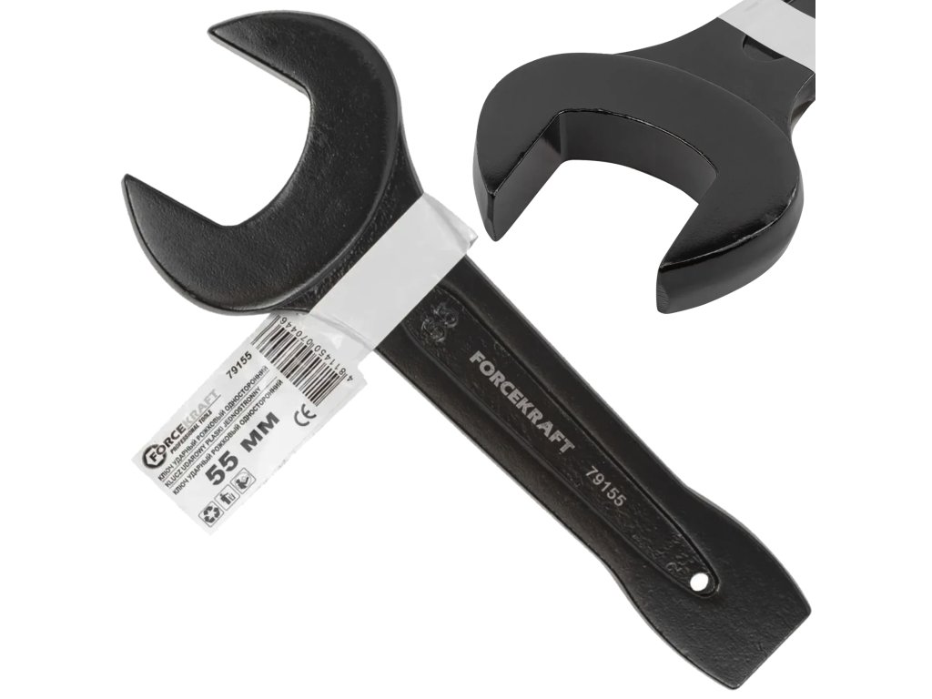 Ojačan udarni ploščat ključ FORCEKRAFT 55 mm je profesionalno orodje namenjeno intenzivnemu delu z velikimi navojnimi spoji v industriji, energetiki, kmetijstvu in zahtevnih servisnih pogojih. Izdelan iz trpežne krom-molibdenove zlitine (Cr‑Mo), združuje odpornost proti deformacijam, udarcem in koroziji.