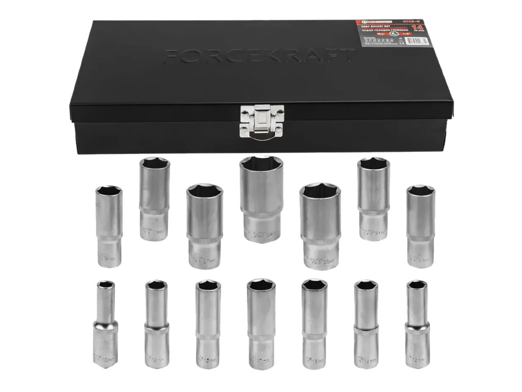 FORCEKRAFT Komplet globokih nasadnih ključev 1/2", šestkotnih, 14-delni, s kovčkom