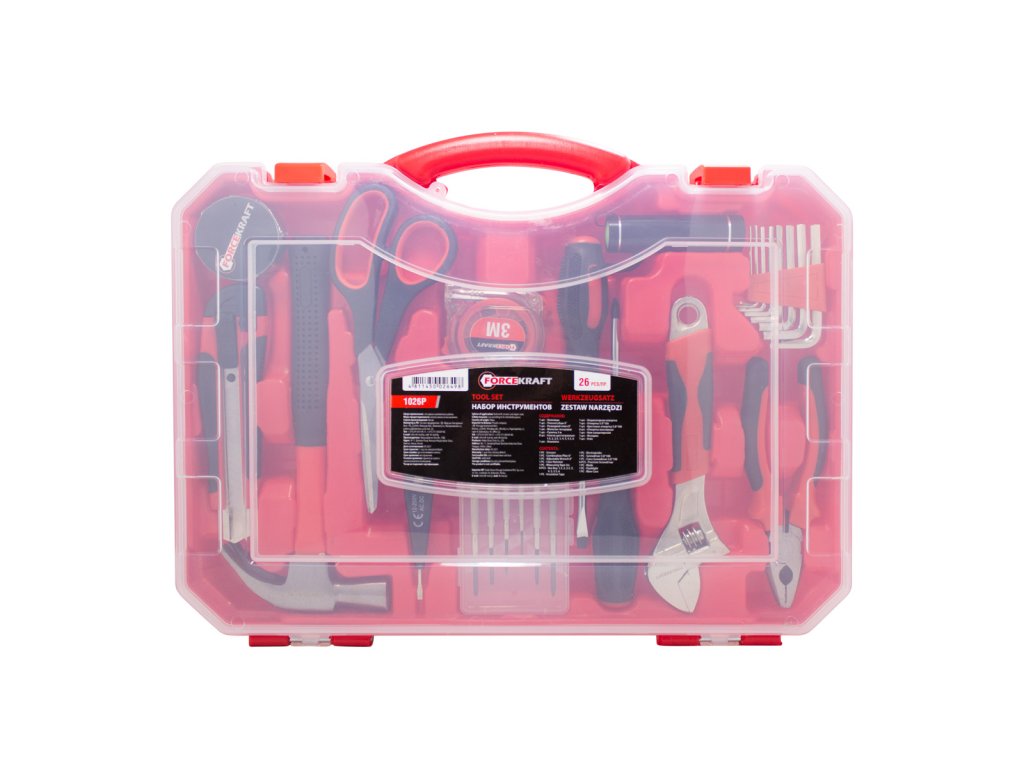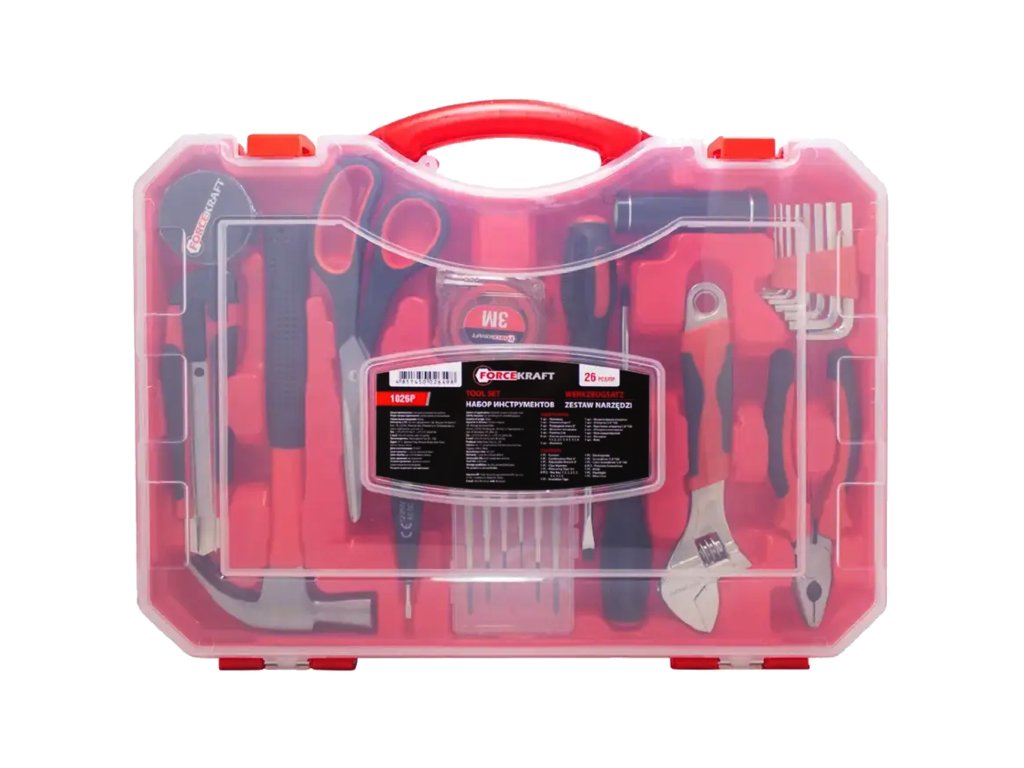 FORCEKRAFT Komplet orodja 26 kosov, kombinirane klešče, izvijači, kladivo