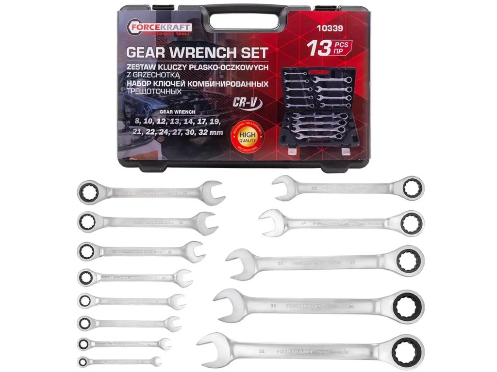 FORCEKRAFT komplet ravnih obročastih ključev z račnovo, 13 kosov, 8–32 mm