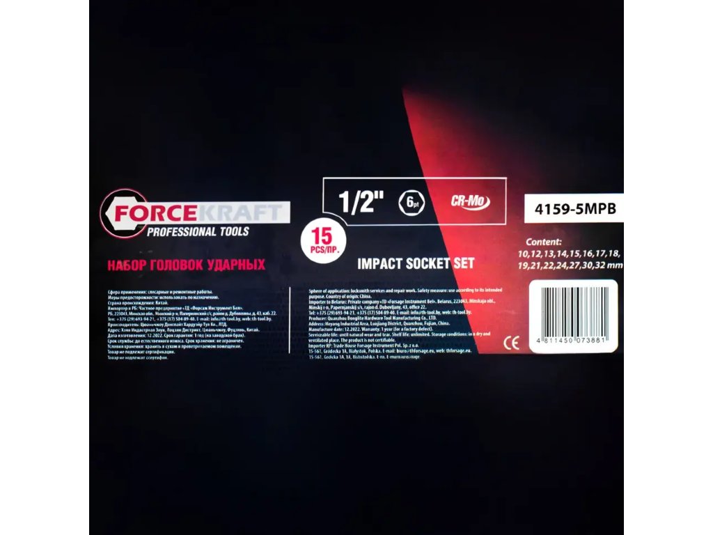 Forcekraft komplet udarnih udarnih glav 1/2" 15 kosov, šesterokotni (10-32 mm)