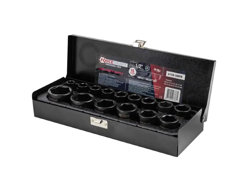 Forcekraft komplet udarnih nasadnih ključev 1/2" 15 kos, šestkotni (10-32 mm)