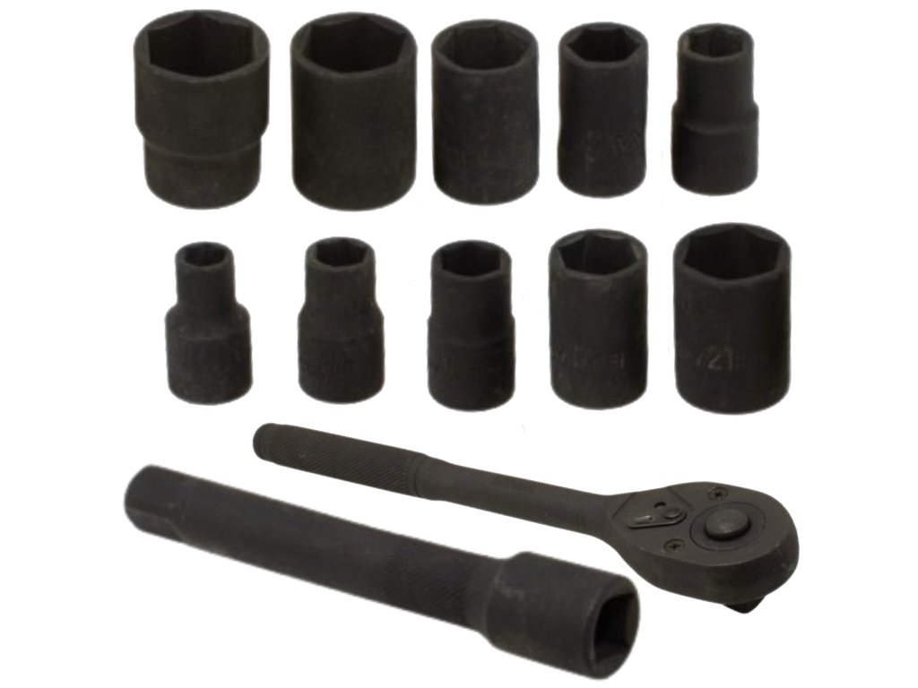 - 10 udarnih nasadnih glav (10, 11, 12, 13, 14, 17, 19, 21, 22, 24 mm)