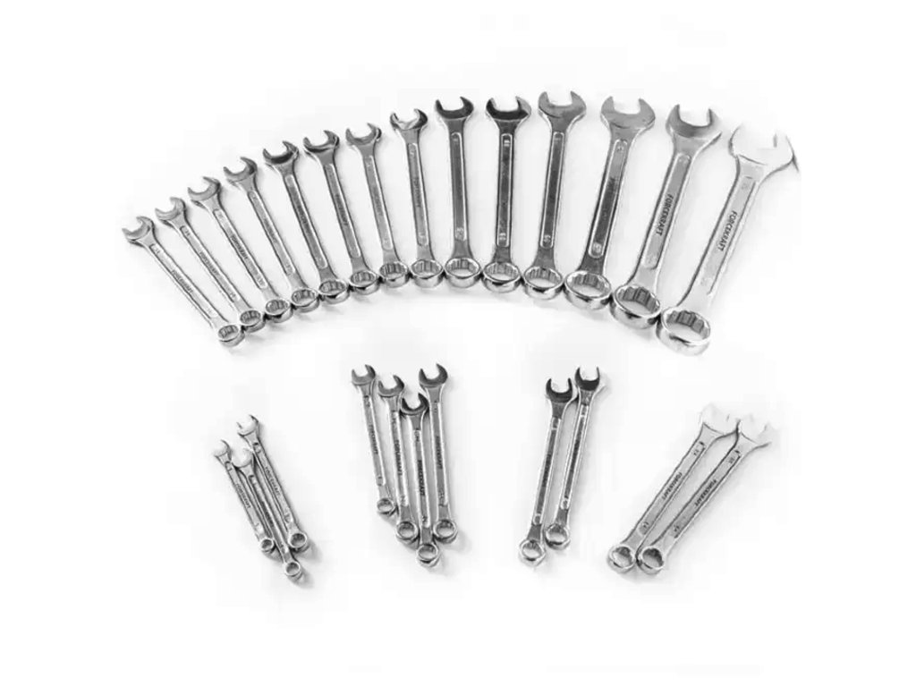 - 25 kosov ravnih obročastih ključev v razponu 6–32 mm