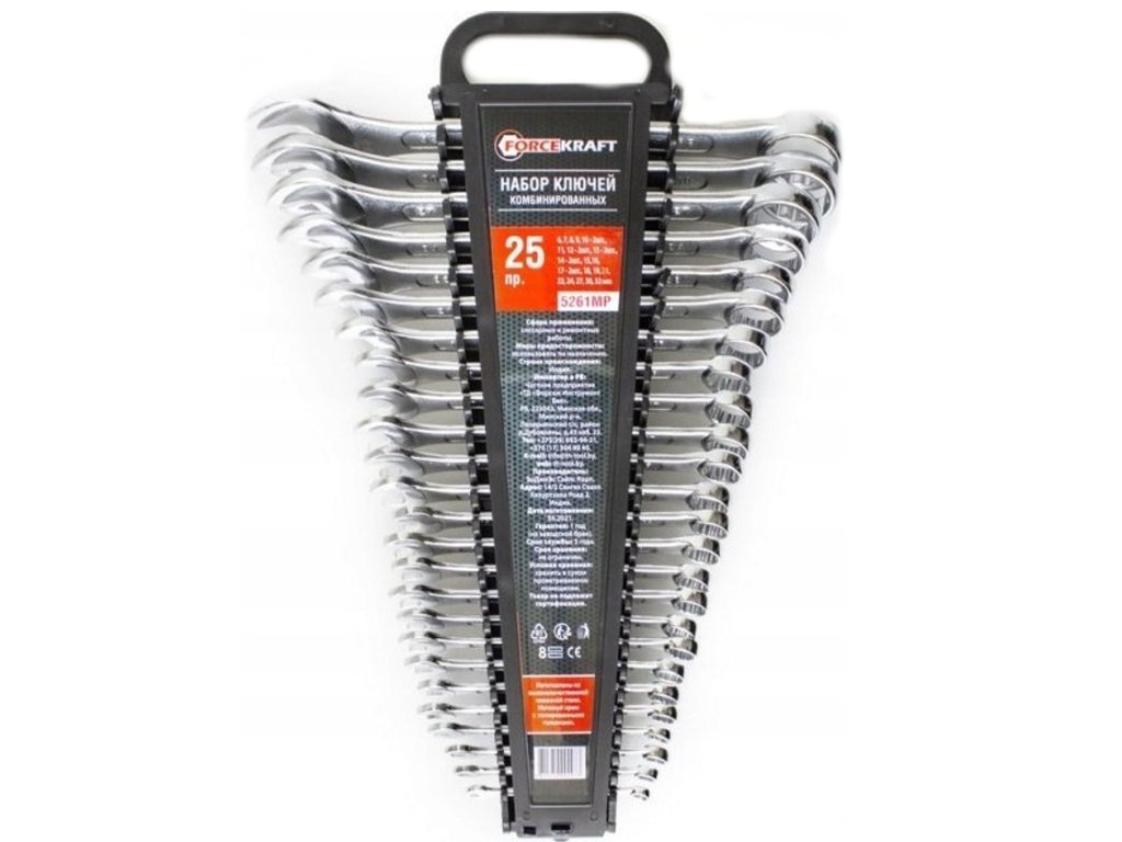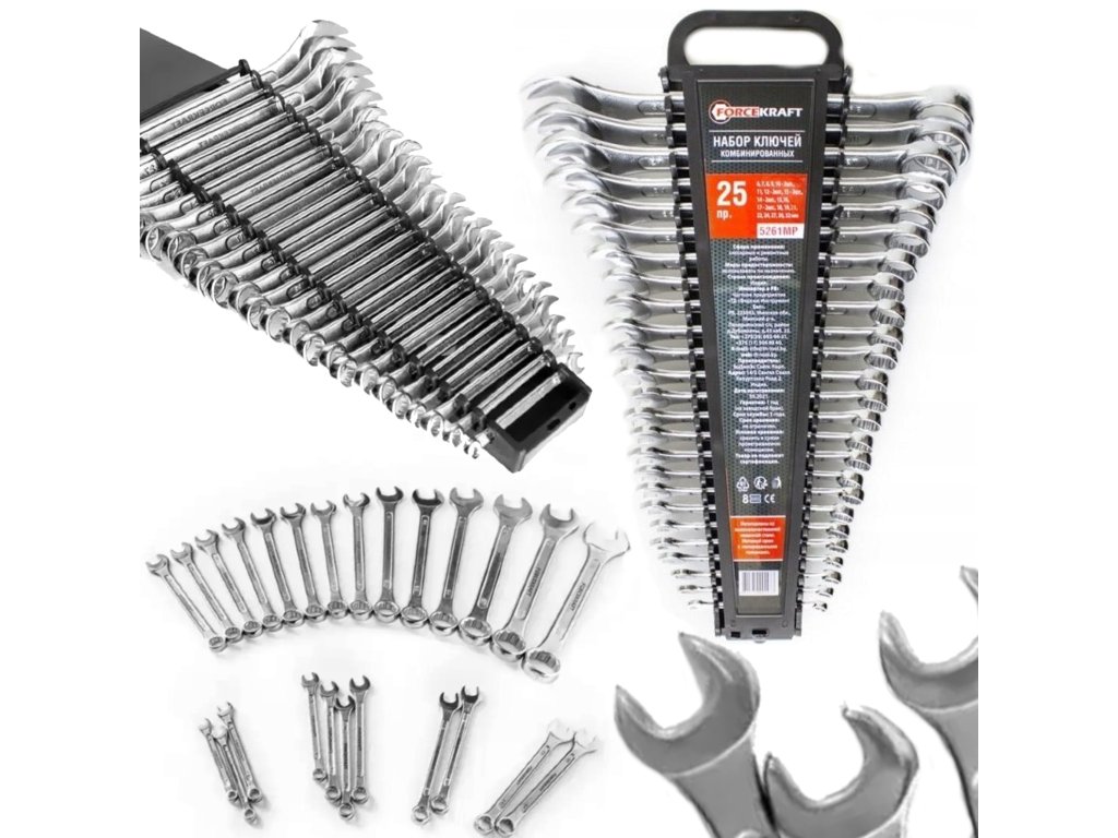FORCEKRAFT Velik komplet ravnih obročastih ključev 25 kosov 6–32 mm, Cr-V