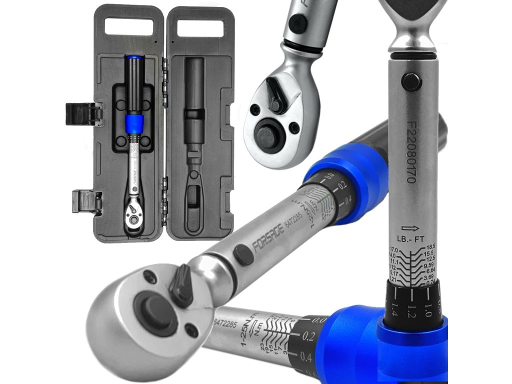 Forsage momentni ključ 1/4" z zaklepom, 1–25 Nm, certifikat, 72 zob