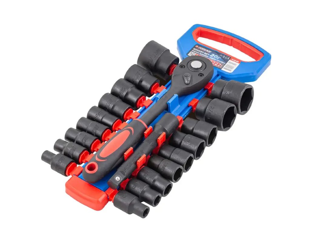 Popoln 20-delni komplet je nepogrešljiv pripomoček vsake delavnice, avtomehanične delavnice ali domače garaže. Zaradi širokega izbora velikosti nasadnih ključev in robustne izdelave omogoča udobno in varno delo pri številnih mehanskih in avtomobilskih aplikacijah.