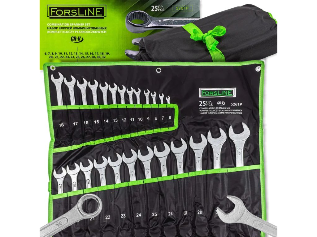 Forsline velika komplet obročnih ravnih ključev, 25 kosov, 6–32 mm, Cr-V