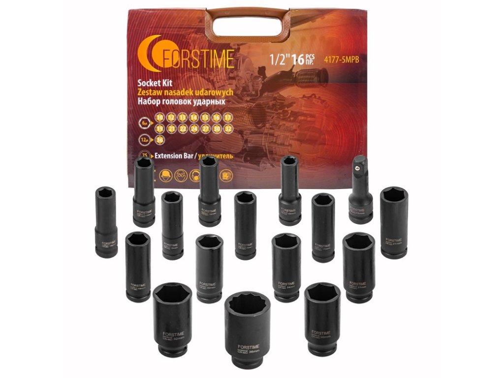 FORSTIME Komplet globokih 6-krakih udarnih nasadnih ključev, 16 kosov, v kovčku