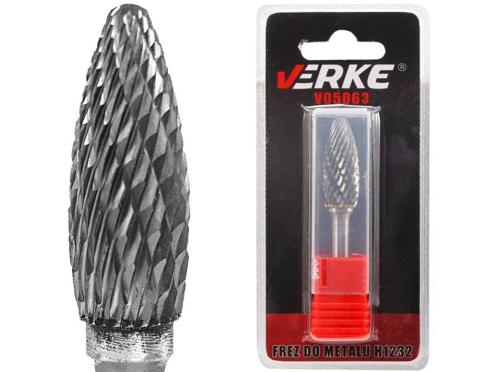 Rezkar H1232 VERKE je opremljen z dvojnimi izmenično poševnimi rezili, namenjenimi za univerzalno uporabo. Ustvarja kratke ostružke, ki se zlahka odvajajo in omogočajo enakomerno delo pri obdelavi žilavega jekla. Je idealen za oblikovanje, glajenje in odstranjevanje materialov, kot so: kaljeno jeklo (HRC65), nerjaveče jeklo, litina, barvne kovine, keramika, plastika ali les. Rezkar je izdelan iz volframovega karbida, kar je spojina z najvišjo tališčem (6000 °C) med znanimi spojinami in izjemno odpornostjo.