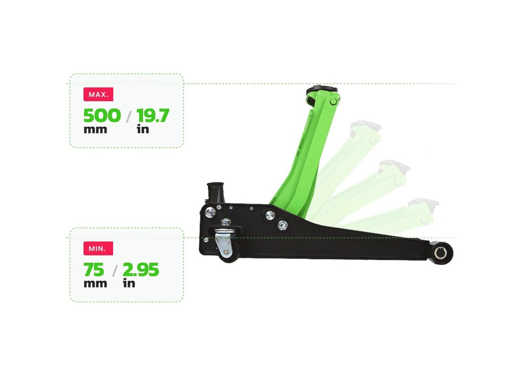 ✅ Razpon dviga 75 do 500 mm – idealno tako za nizko postavljena vozila kot za SUV-je