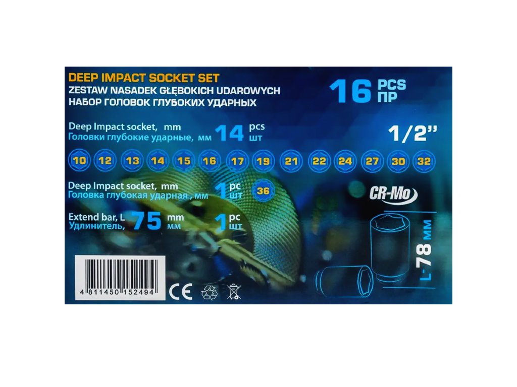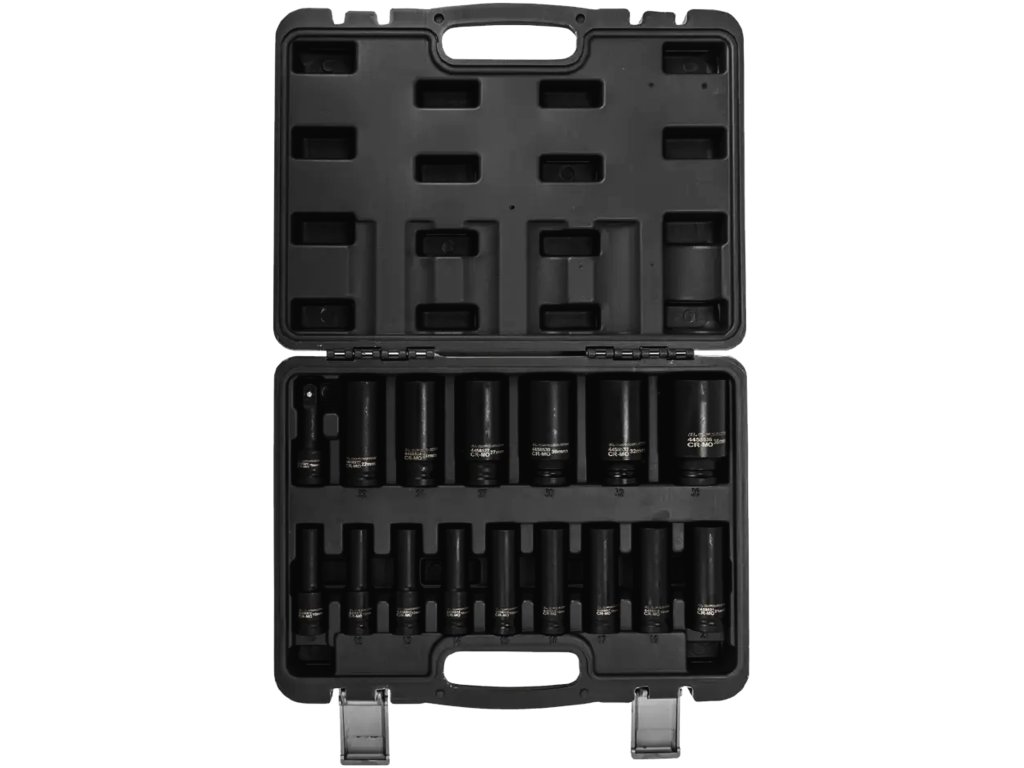 Komplet 16 globokih udarnih nasadnih ključev 1/2" je zbirka zanesljivih orodij iz trpežnega krom-molibdenskega jekla (Cr-Mo), zasnovanih za najbolj zahtevno uporabo. Šestkotni nasadni ključi so idealni za delo s pritrdilnimi elementi, ki zahtevajo visok navor – primerni tako za avtomehanične delavnice kot za težko industrijo.