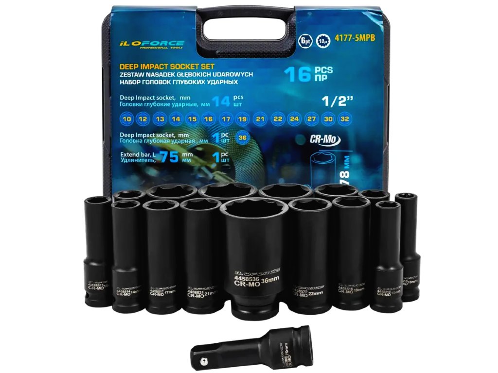 ILOFORCE komplet globokih udarnih nasadnih ključev 1/2" 16 kosov v kovčku