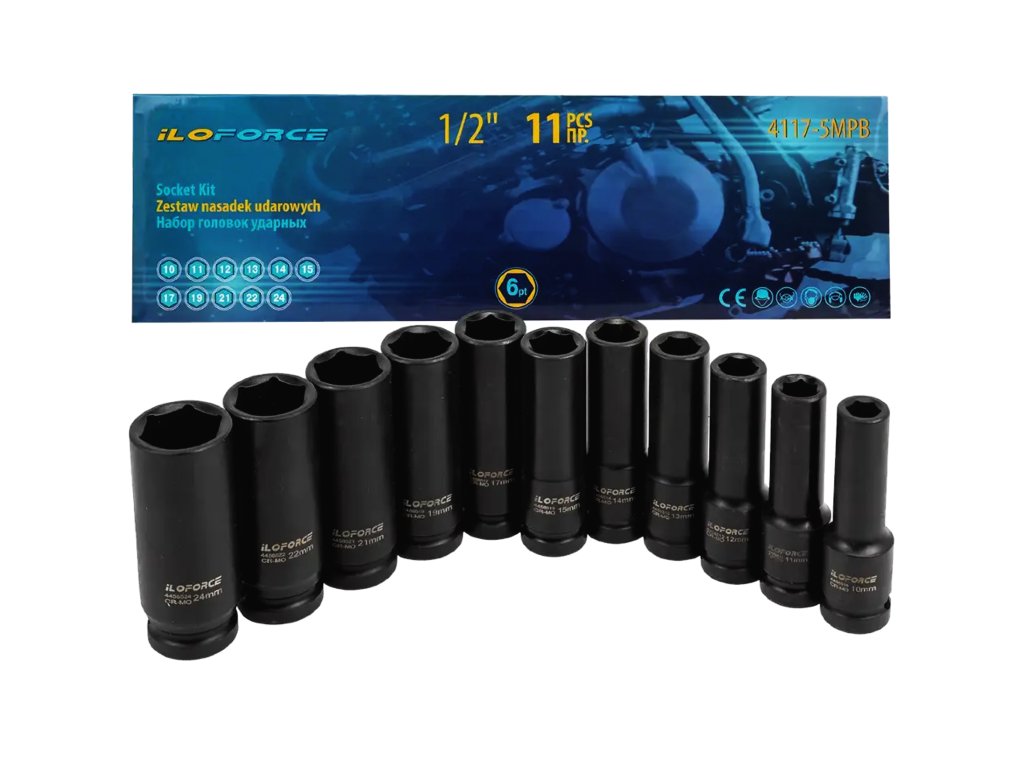 ILOFORCE komplet globokih udarnih nasadnih ključev 1/2", 11 kosov + kovček