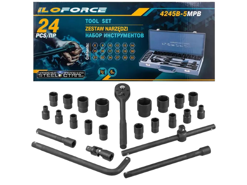 ILOFORCE komplet nasadnih udarnih glav 1/2", šesterokotni, 8–32 mm, 24 kosov + kovček