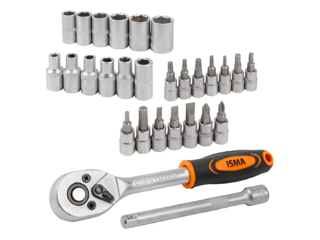 ISMA komplet orodja 28 kosov, nasadni ključi in bit 1/4", jeklo CrV