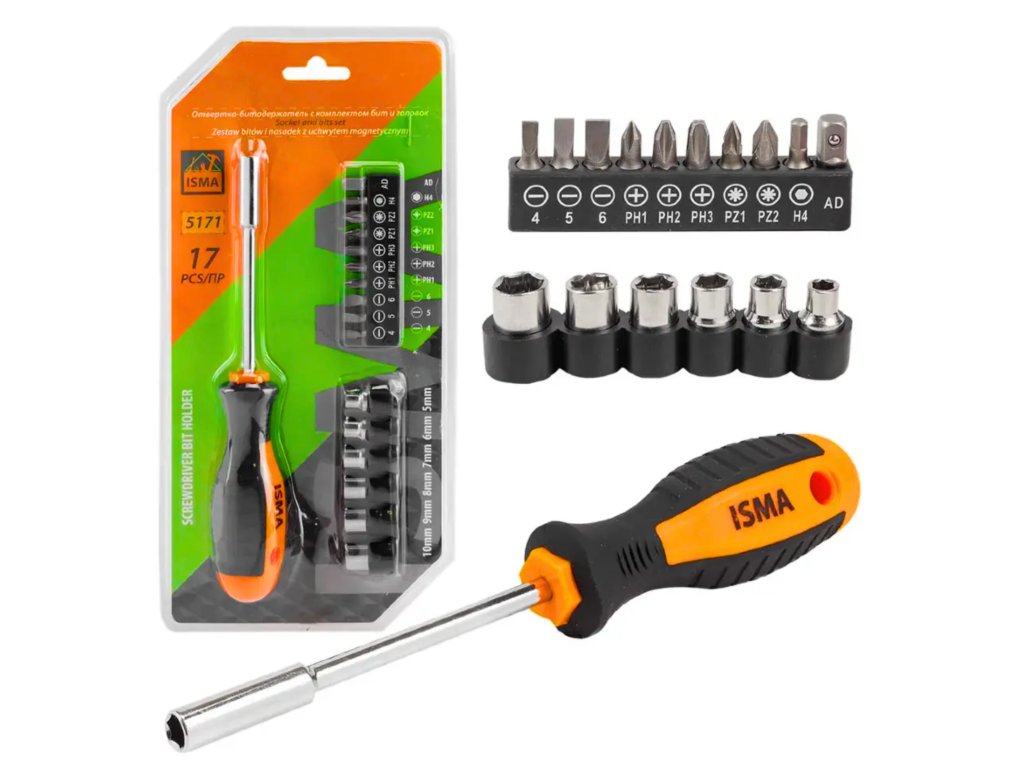 ISMA Univerzalni komplet izvijačev z nastavki, 17 kosov.