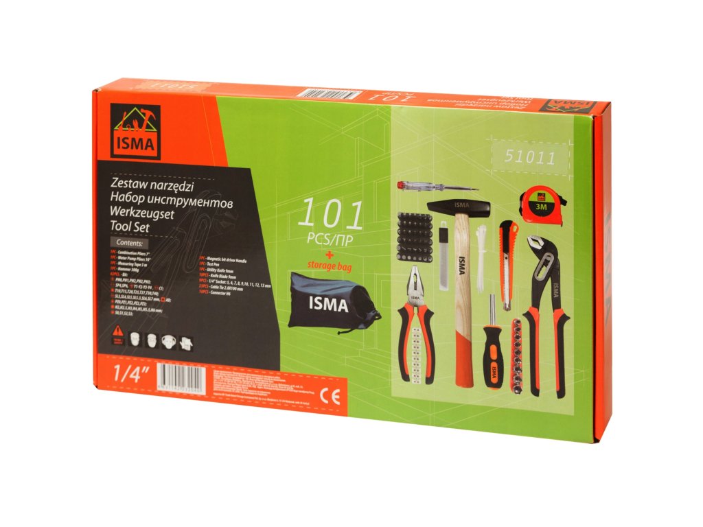 Ne čakajte — dopolnite svojo delavnico s praktičnim, trpežnim in univerzalnim kompletom orodja ISMA 101 del. Uporaben je vedno, ko ga potrebujete.