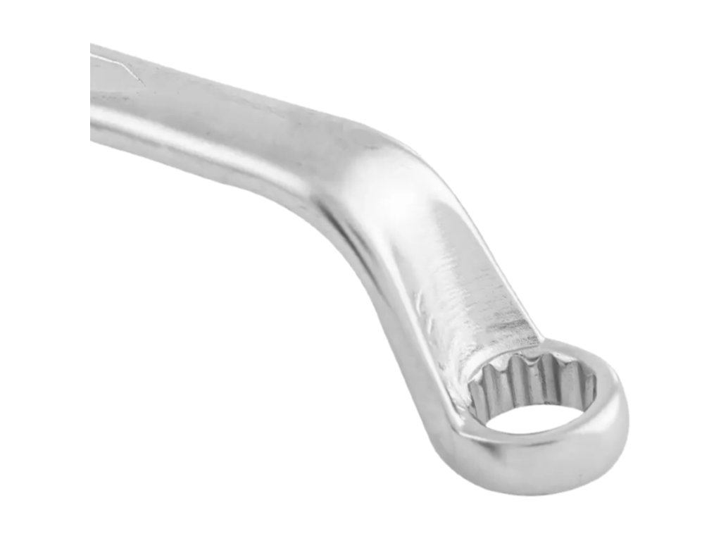 Dvostranski obročni ključ, ukrivljen za 75° v velikostih 8×10 mm, je zanesljivo ročno orodje, zasnovano za delo v omejenem prostoru in pri težko dostopnih navojevih spojih. Zaradi 12-robnega profila in kota upogiba 75° na obeh koncih ključ nudi visoko udobje pri delu in omogoča enostavno uporabo tudi tam, kjer standardni ključi odpovejo.