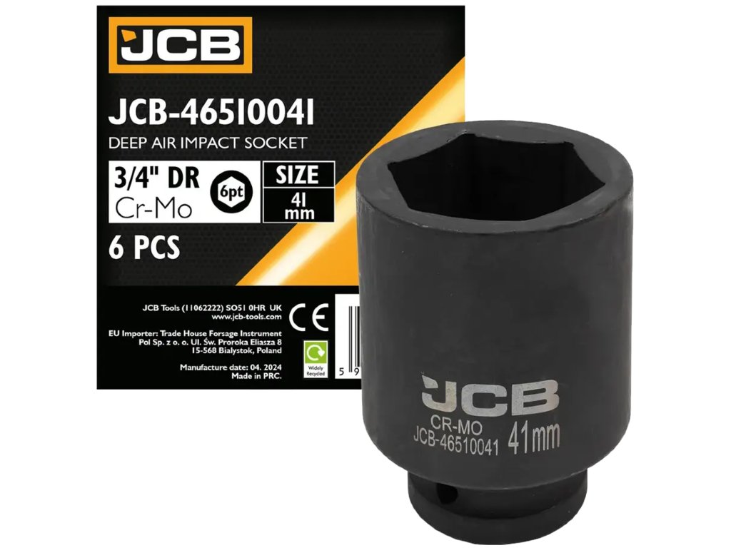 JCB udarna globoka nasadna ključavnica 3/4", 41 mm, 6-kraka, Cr-Mo