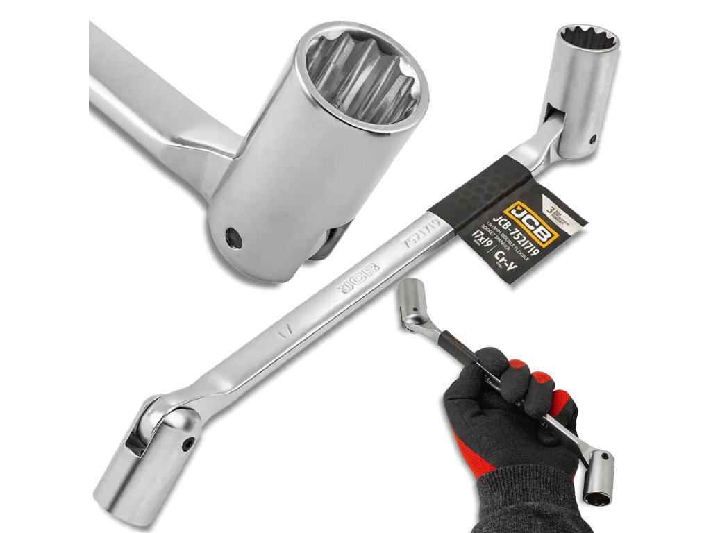 JCB členkasta nasadna glava 17–19 mm, obojestranska, 12-kraka, Cr-V jeklo