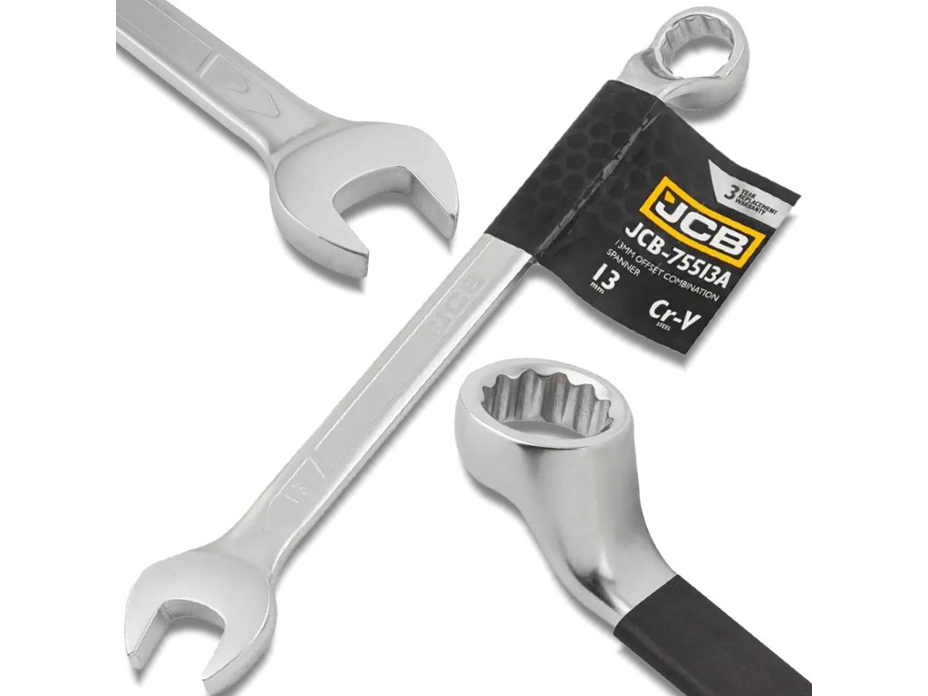 JCB Kombinirani ključ 13 mm, obojestranski, upognjen za 75°, Cr-V, 12-kraki