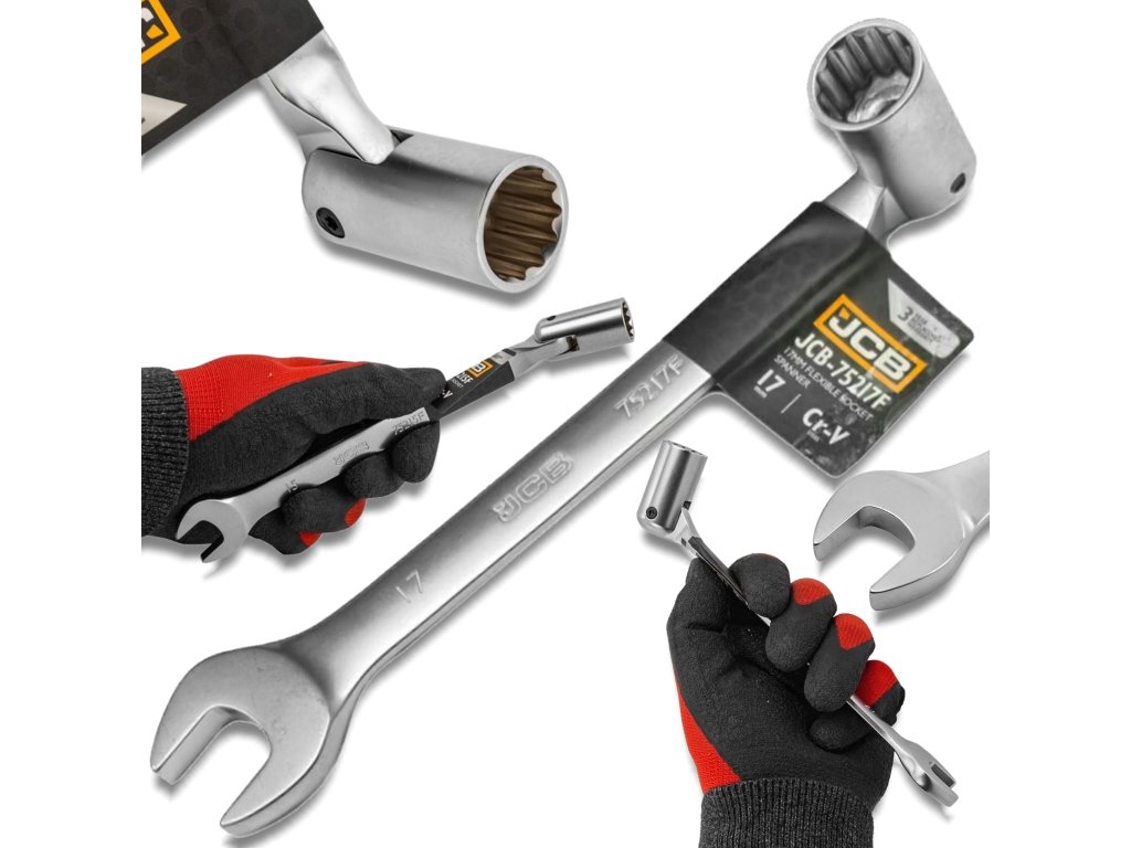 JCB obojestranski vilasti ključ z gibljivim členom 17 mm, Cr‑V jeklo