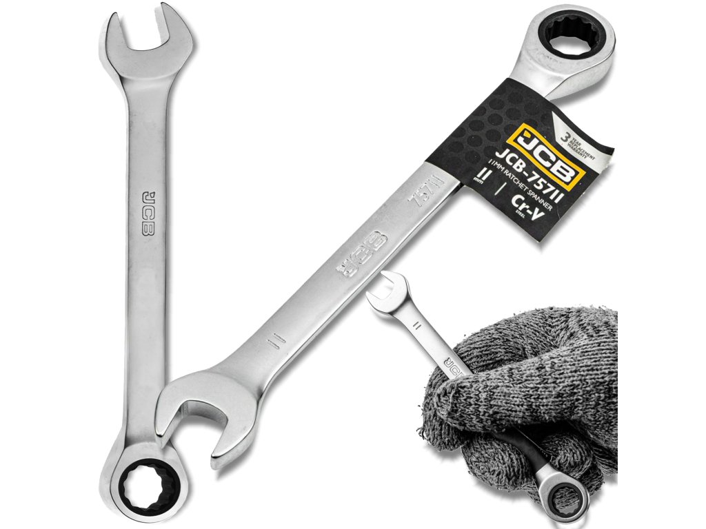 Obročasto-ploščati ključ z račko 11 mm znamke JCB je nepogrešljivo orodje tako za domače mojstre kot profesionalne mehanike. Omogoča hitro, natančno in udobno odvijanje ali privijanje vijakov v širokem spektru uporabe – od domačih popravil do delavnic.