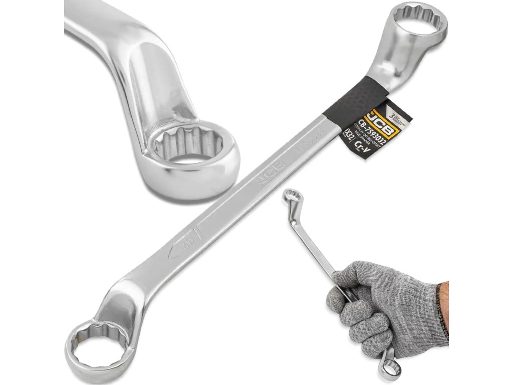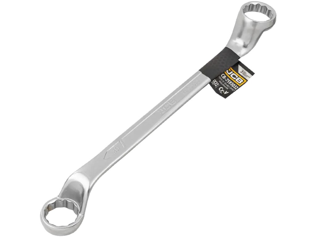 JCB obojestranski obročasti ključ, ukrivljen za 75°, 30 × 32 mm, Cr‑V, 12-kraki