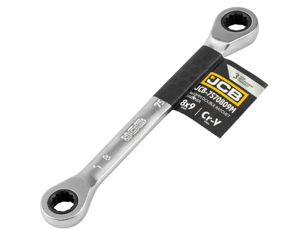 JCB Dvostranski obročasti ključ z račko 8 x 9 mm, 12-kraki, Cr-V