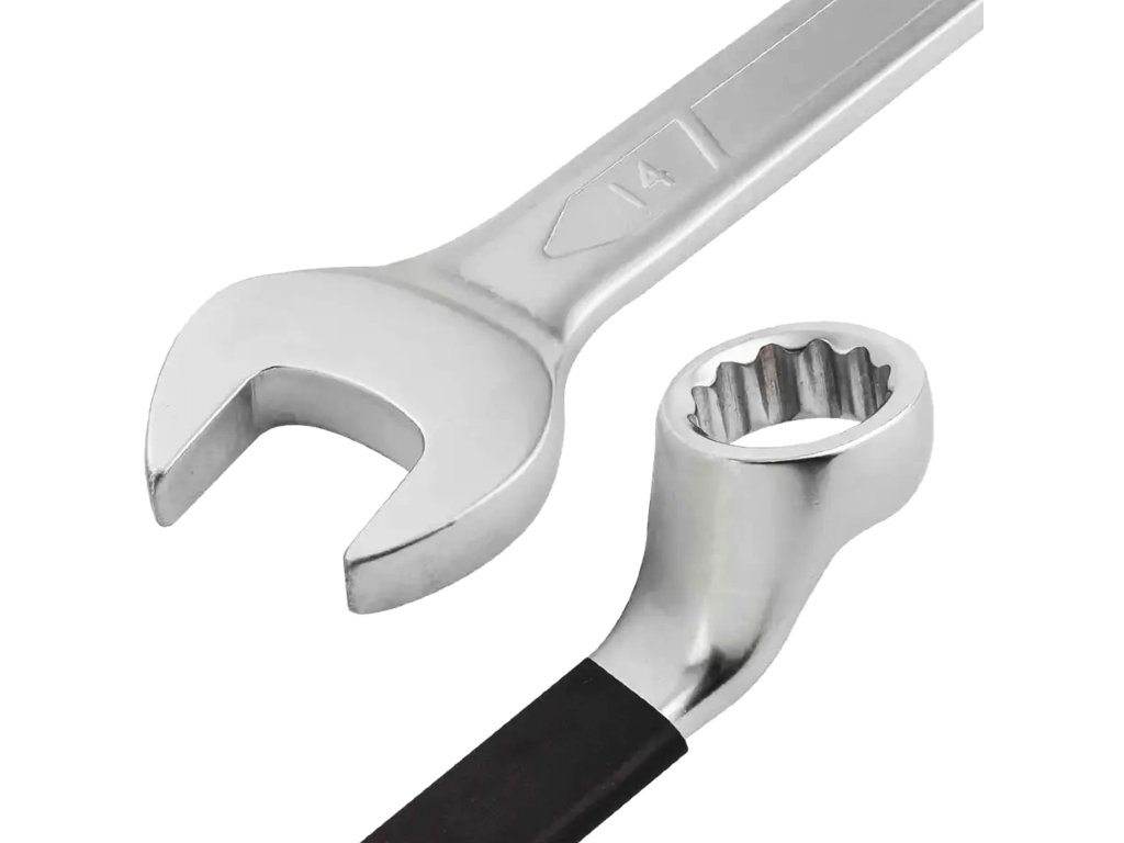 Profesionalni obročni ključ ukrivljen za 75° – 14 mm je specializirano orodje namenjeno delu v tesnih prostorih in težko dostopnih mestih, kjer običajni ključi odpovejo. Zaradi globokega odmika in ukrivljenosti za 75° omogoča učinkovito delo z elementi, nameščenimi v vdolbinah ali v bližini gradbenih ovir.