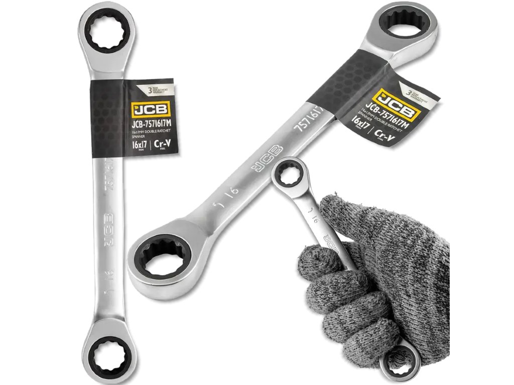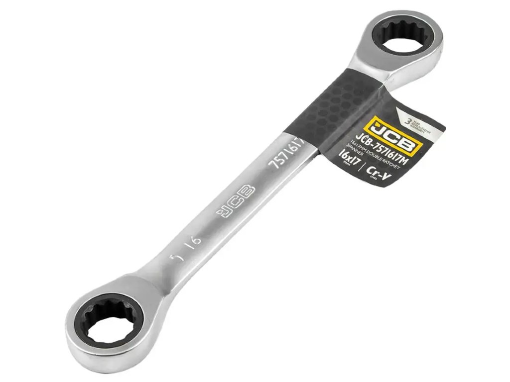 JCB obojestranski obročni ključ z račnom, 16 x 17 mm, Cr-V, 12-kraki