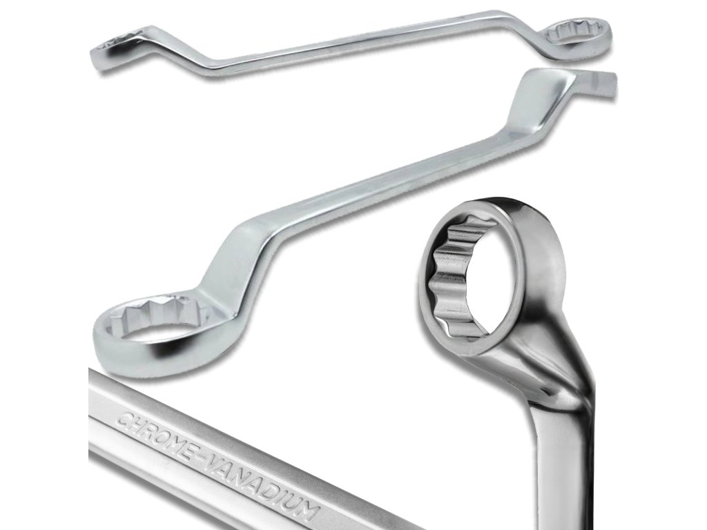 Konstrukcija z odskočenimi očesi izboljšuje dostopnost in povečuje vzvod, kar je ključno pri odvijanju ali privijanju močno obremenjenih vijakov. Zaradi izvedbe iz krom-vanadijevega jekla (CrV) s hladnim kovanjem je orodje izjemno odporno proti deformacijam in obrabi.
