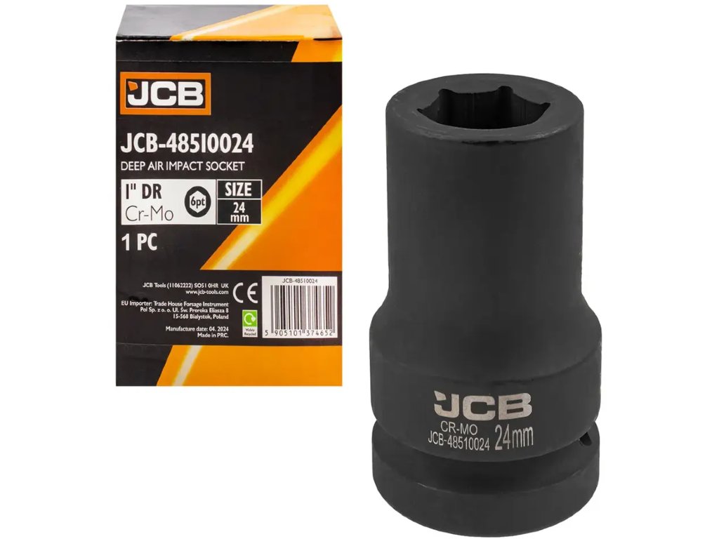 JCB udarna globoka nasadna glava 1" 24 mm, šesterokotna, Cr‑Mo