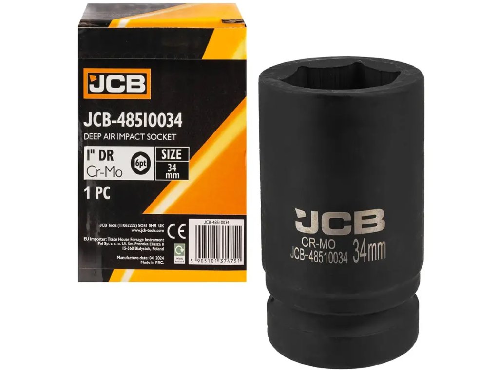 JCB udarna globoka nasadna ključavnica 1" 35 mm, šesterokotna, Cr‑Mo