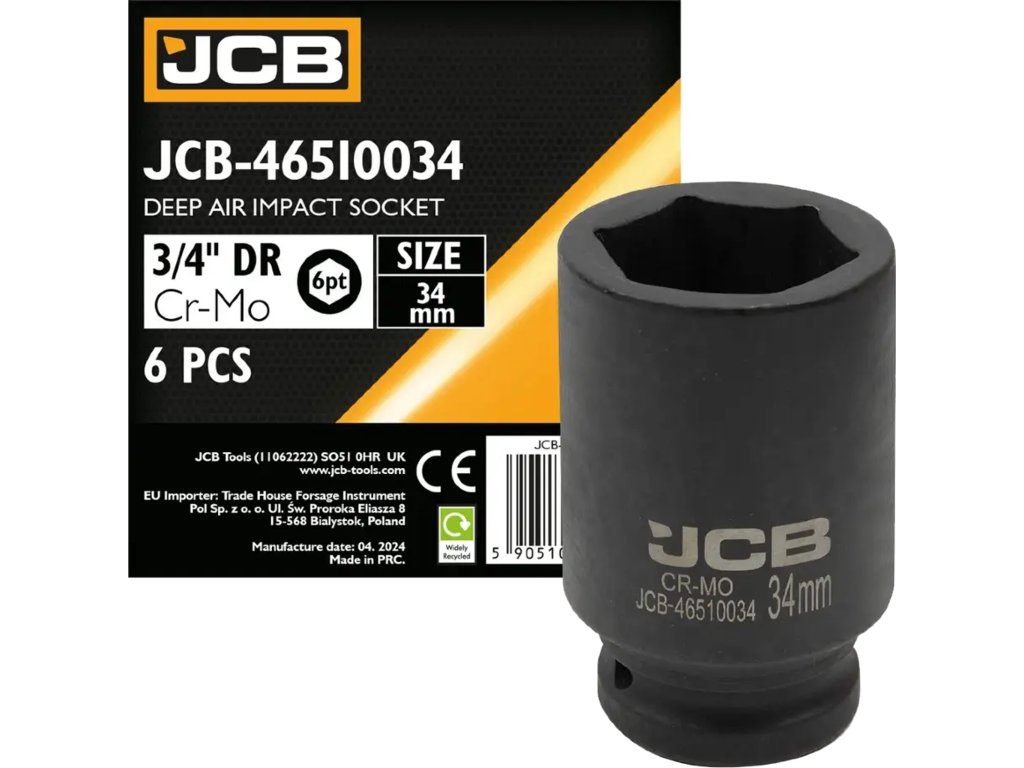 JCB udarna globoka nasadna ključavnica 3/4" 34 mm, šesterokotna, Cr-Mo
