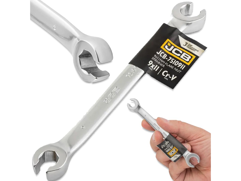 JCB razdelčni obročni ključ 9 x 11 mm, obojestranski, šesterokotni, Cr-V jeklo
