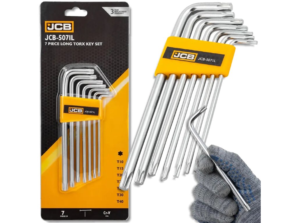 JCB komplet dolgih Torx ključev tipa L, 7 kosov, T10–T40, Cr-V