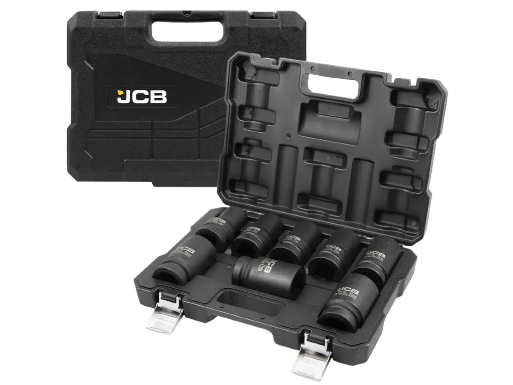 Komplet 8 globokih udarnih nasadnih ključev JCB Tools je profesionalno orodje namenjeno intenzivnemu delavnemu okolju, vključno z montažo in demontažo vijakov ter matic z uporabo udarnih vijačnikov.